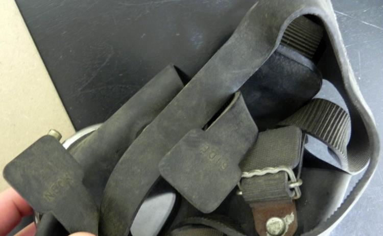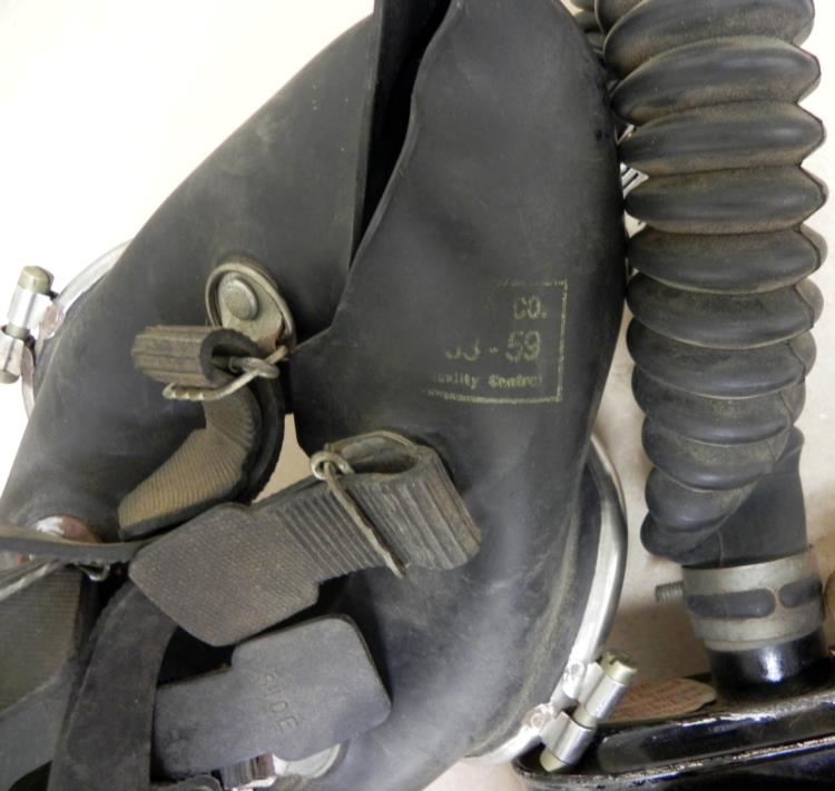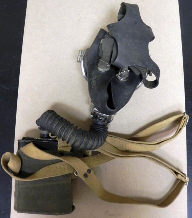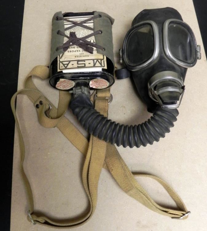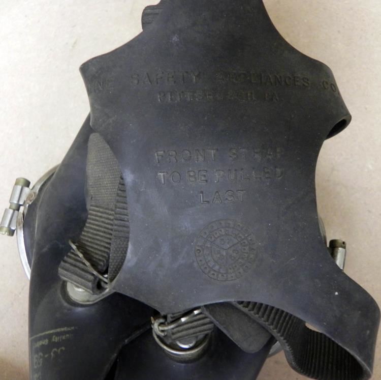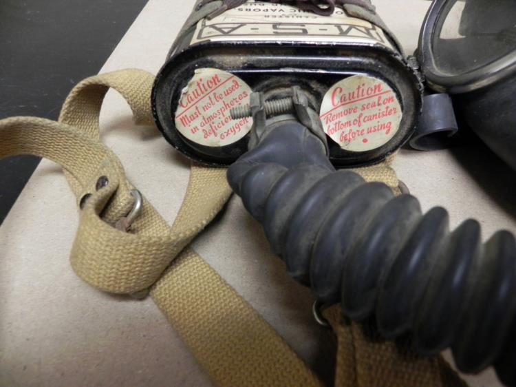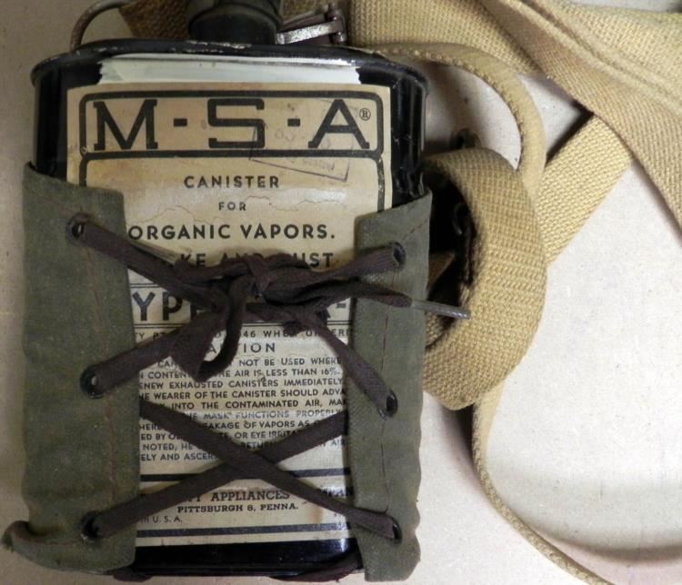 OFFERED HERE IS AN INTERESTING VIET NAM WAR FULL RIG TO PROTECT FROM ORGANIC VAPORS, SMOKE ETC-MADE BY "MINE SAFETY APPLIANCES-PITTSBURGH--LABEL SAYS "USE BEFORE 12-62".