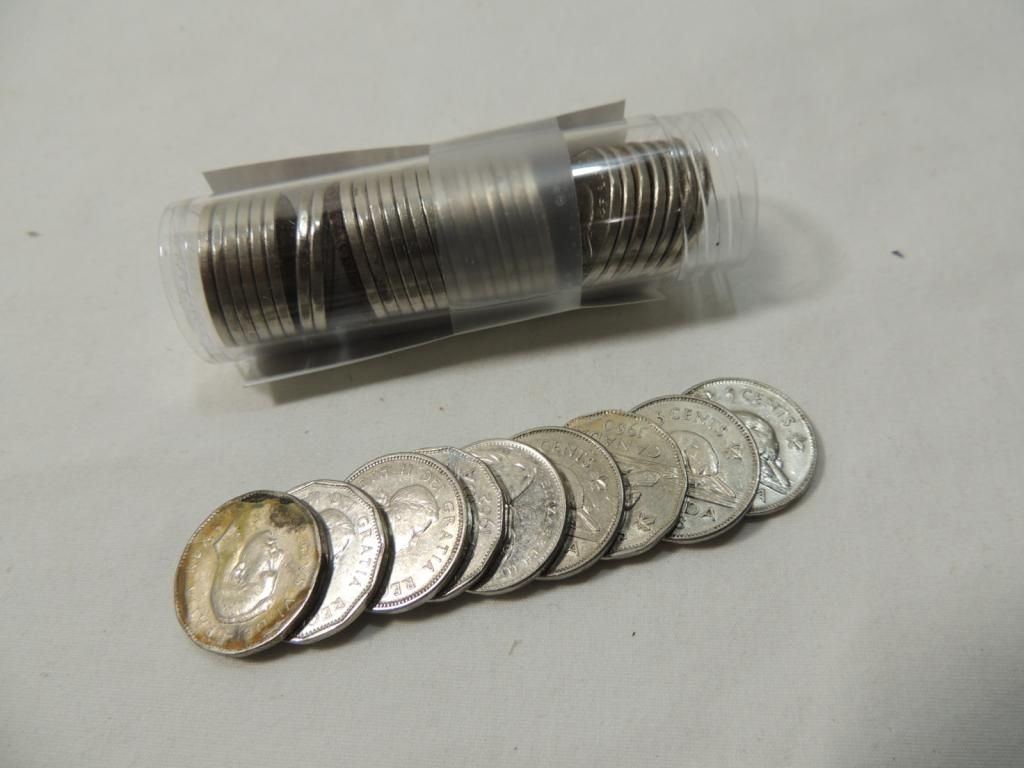 FULL ROLL CANADA NICKELS COIN COLLECTIBLE. ASSORTED DATES. CURRENCY. AS SHOWN. SEE PHOTO FOR MORE DETAILS.