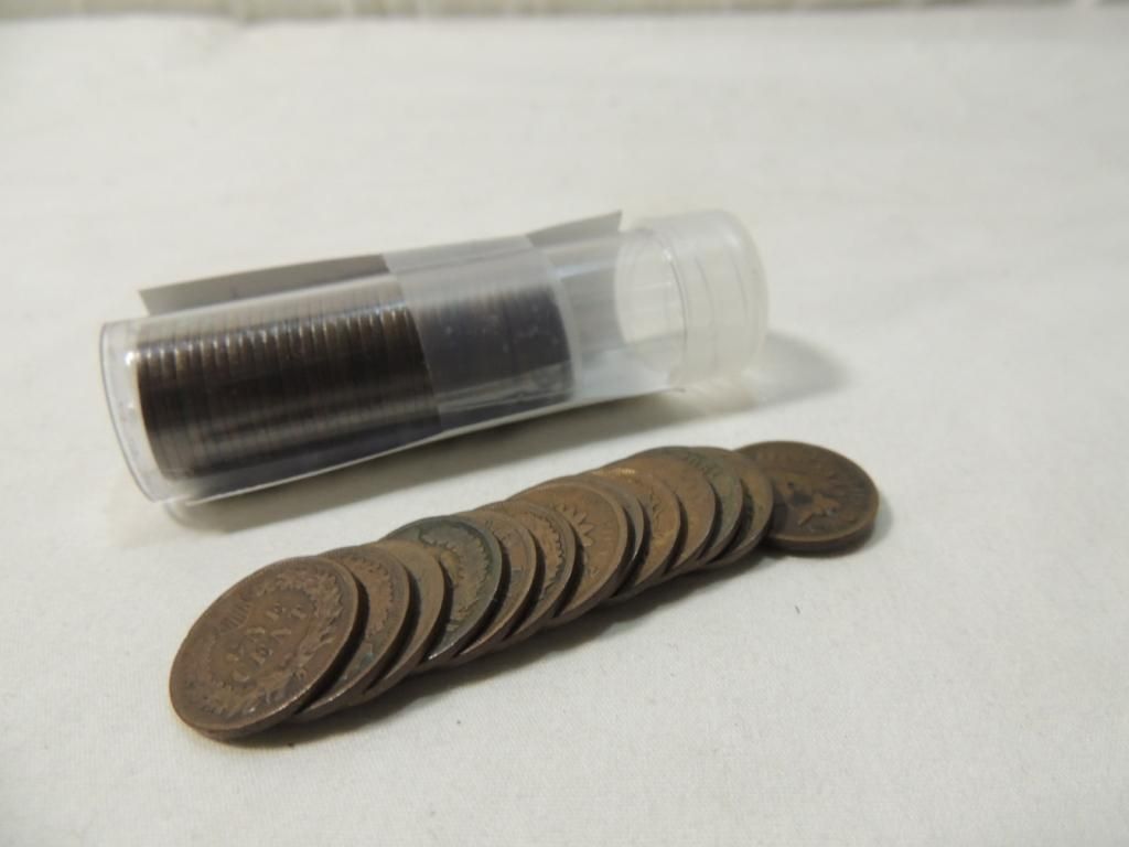 FULL ROLL INDIAN PENNIES. COIN COLLECTIBLE. CURRENCY. AS SHOWN. SEE PHOTO FOR MORE DETAILS.