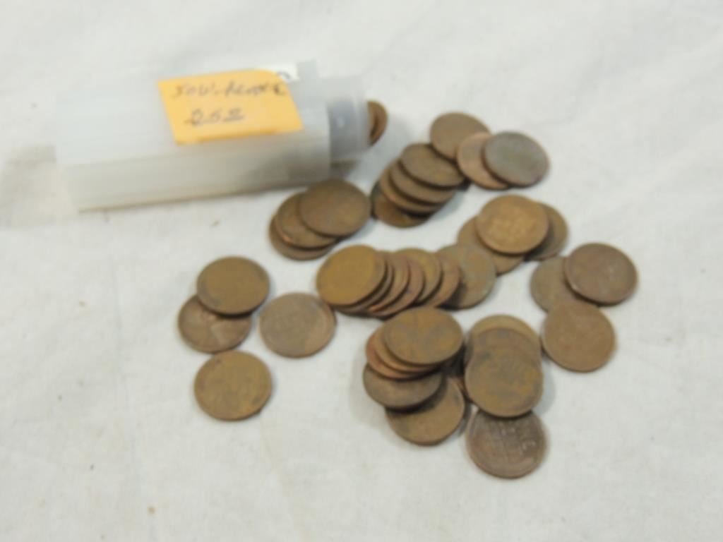 FULL ROLL 50 WHEAT PENNIES COIN COLLECTIBLES, CURRENCY COLLECTIBLE, UNITED STATES COIN COLLECTIBLE, COIN COLLECTORS, AS SHOWN SEE PHOTO FOR MORE DETAILS