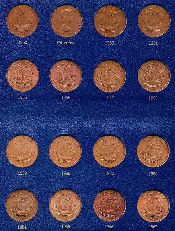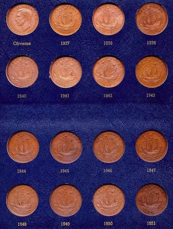 FULL SET of GREAT BRITIAN 1/2 PENNIES-ALL BU+ 1937-1967