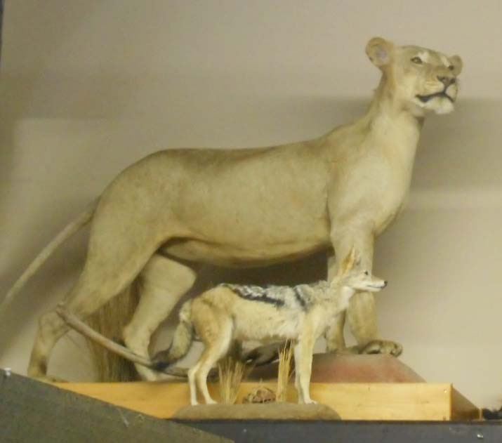 This is for only the Jackal in the front of the picture NOT the Lion. Excellent Taxidermy work. Local Pick-up only or Buyer must Arrange Shipping.