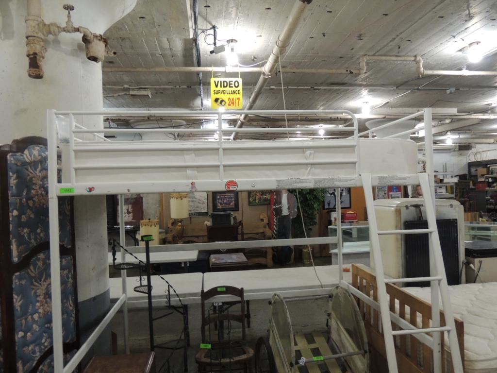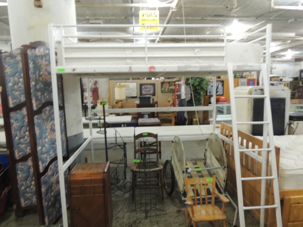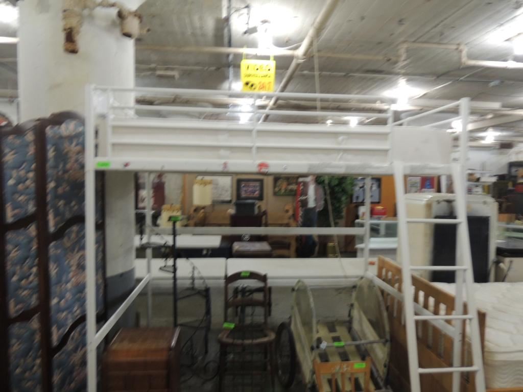 LOFT STYLE BEDFRAME, RAISED BEDFRAME, METAL BEDFRAMED, STORAGE UNDER, LOFT STYLE BEDFRAME AS SHOWN SEE PHOTO FOR MORE DETAILS.