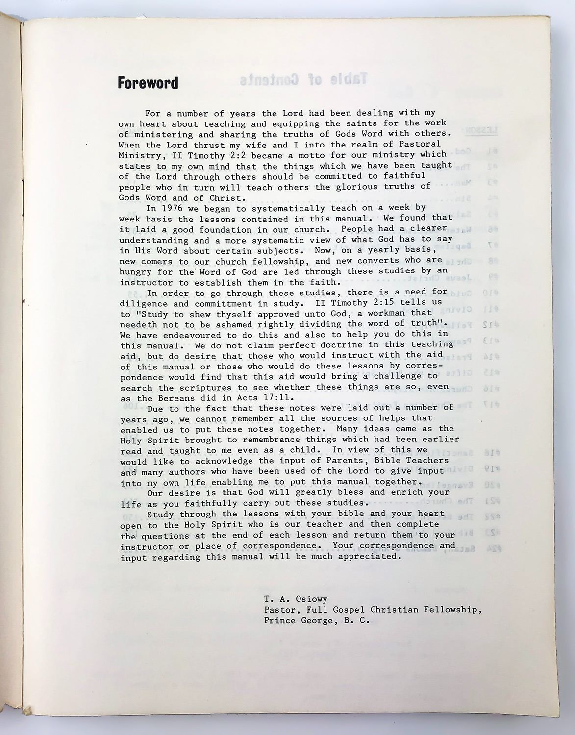 #9014 - VINTAGE SYSTEMATIC BIBLE STUDY BOOK - DATE UNKNOWN - 178 PAGES. PASTOR T.A. OSIOWY - FULL GOSPEL CHRISTIAN FELLOWSHIP, PRINCE GEORGE B.C. MEASURES: 8.5” X 11”***ITEM(S) LOCATED IN LETHBRIDGE ALBERTA. FREE TRANSPORT TO EDMONTON OFFICE AVAILABLE FOR THIS AUCTION. WORLDWIDE SHIPPING IS AVAILABLE FOR ALL ITEMS