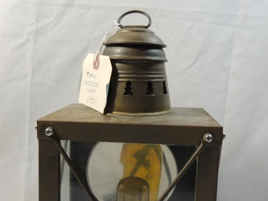 FUNKY VINTAGE LANTERN LAMP. METAL LANTERN LAMP. TABLE LAMP AS SHOWN. SEE PHOTO FOR MORE DETAILS.