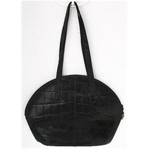 Handcrafted by FURLA in Italy c1950, in their Onyx or black color, from shiny crocodile printed leather. Features - dual straps - exterior zipper & interior zip pocket - gold tone hardware - Tone on tone stitching and edges. Measures 21 inches in length from the straps - bag measures 15 1/2 inches x 11 inches. In excellent used condition