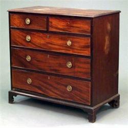 FURNITURE AND DECORATIONS - A George III mahogany chest, fitted two short and three long graduat...