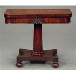 FURNITURE AND DECORATIONS - A William IV mahogany card table, the folding rounded rectangular to...