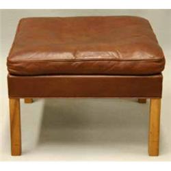 FOTPALL, BÖRJE MOGENSEN FÖR FREDRICIA STOLEFABRIK,DANMARK MODELL NR 2204, KLÄDD MED BRUNT SKINN, BEN AV KÖRSBÄR, FORMGIVEN 1962 FÖR MOGENSENS EGET, BOENDE, ETIKETTMÄRKT