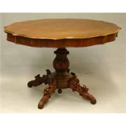 SALONGSBORD, MAHOGNY, FYRDELAD SKUREN CENTRALFOT, OVAL VÅGIG SKIVA, NYROKOKO C. 1870, H74, B115, D86