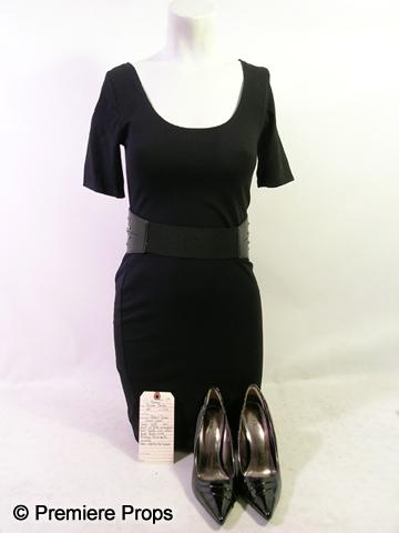 Furry Vengeance (2010) - Tammy Sanders (Brooke Shields) screen worn, hero, short back short sleeve dress with scoopneck 'H&M' dress, (size 8) black with silver studs and double buckle 'Guess' belt, and black 'Spring' pump shoes. (size 39B) Includes wardrobe tag! This is from the Robert Palmer music video!