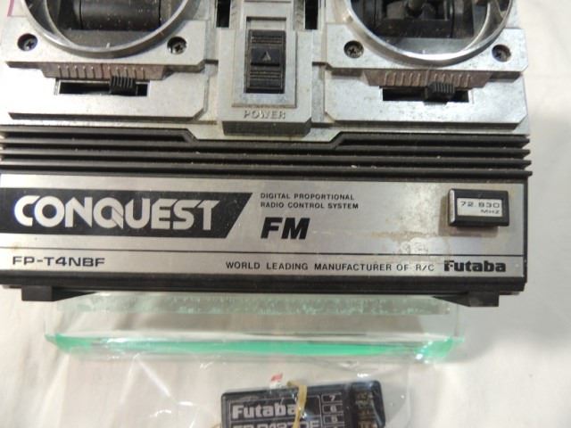NICE WORKING UNIT, FP-T4NBF MODEL. 72.830 MHZ. THIS UNIT IS COMPLETE WITH THE RECEIVER UNIT FOR THE AIRPLANE, WIRING, ANTENNA, ETC. NICE COMPLETE WORKING UNIT. AS SHOWN.