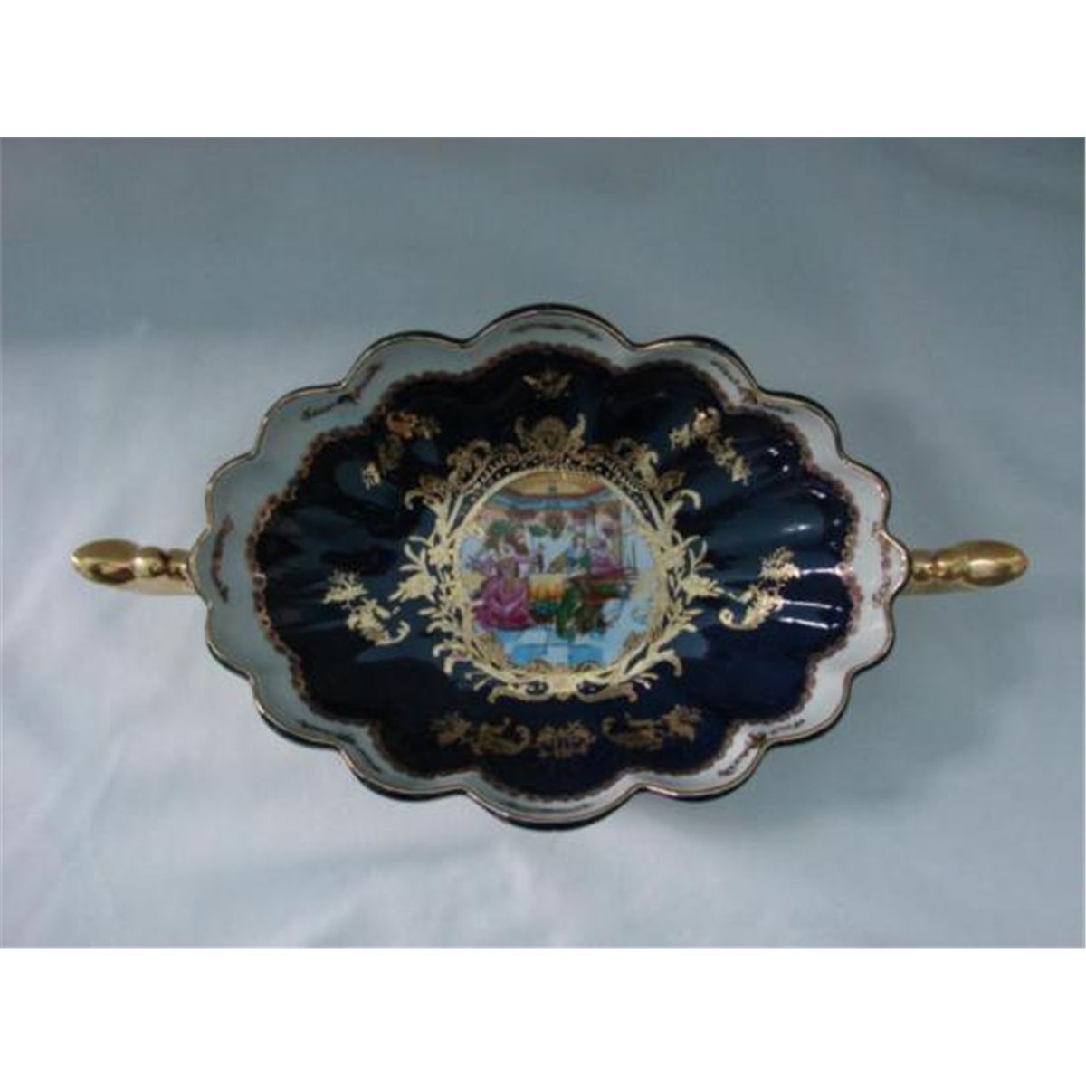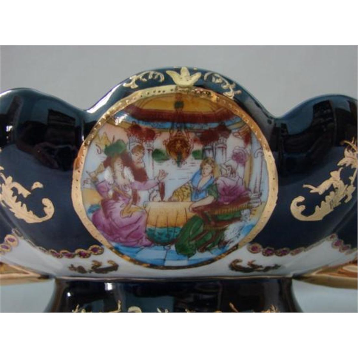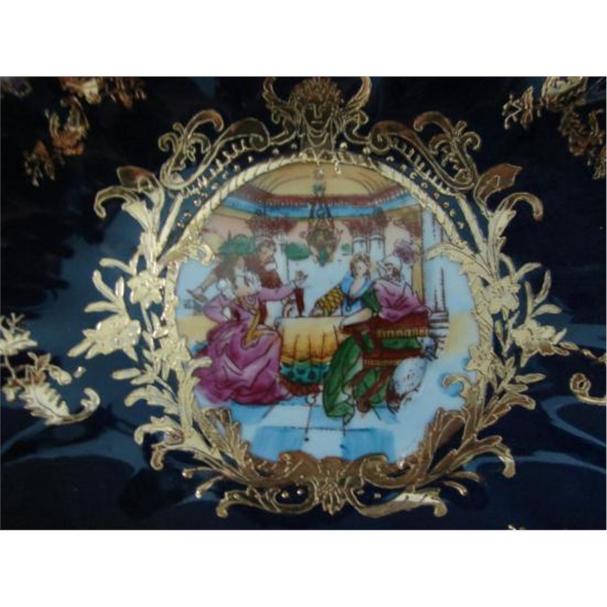 FY166 Svres FRENCH COBALT BLUE JEWELED VICTORIAN BOWL 15in L 4.5 in H 8 in D
