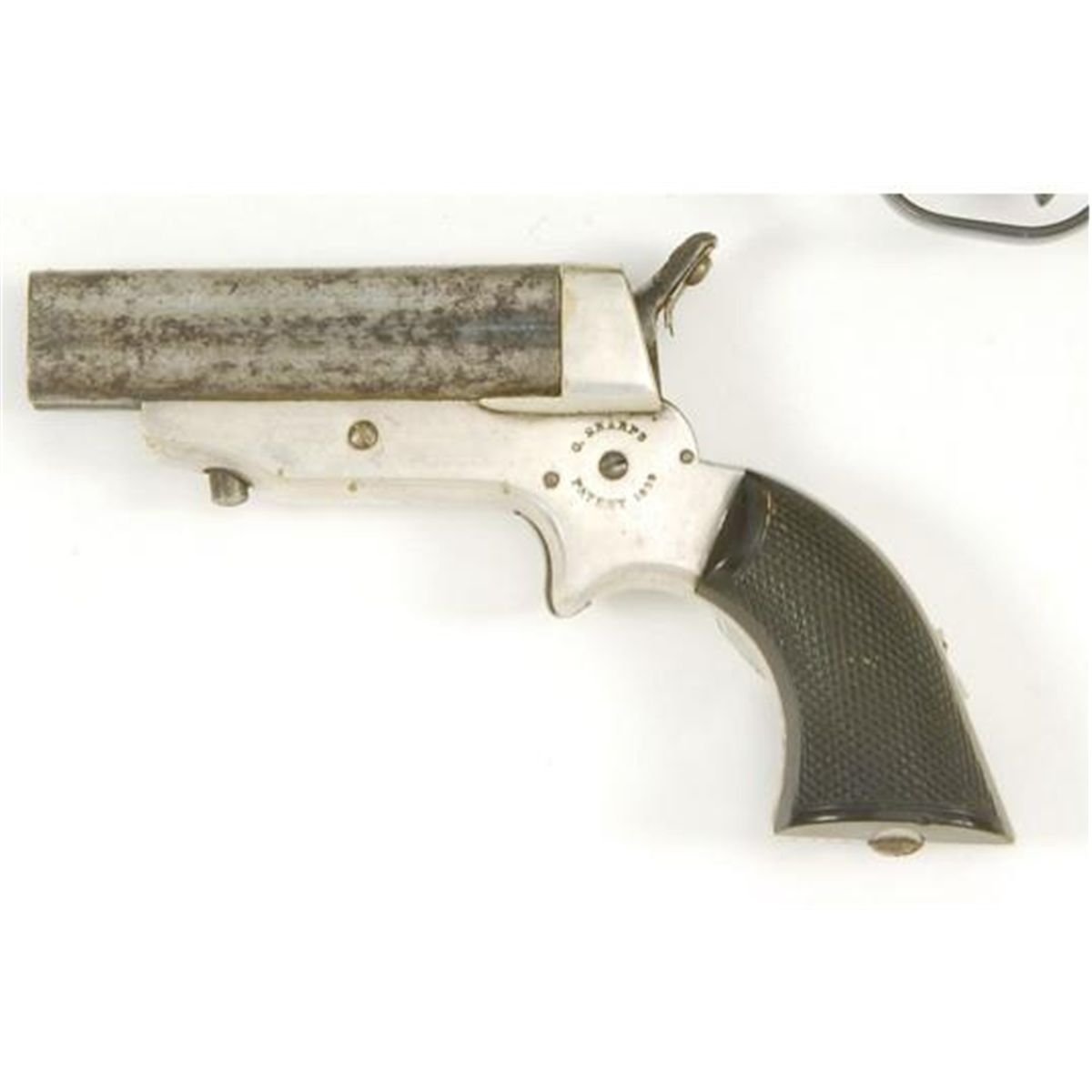 FY48 SHARPS PEPPERBOX PISTOL _28 cal., Serial #1711. Nickel plated. Length of barrel 3