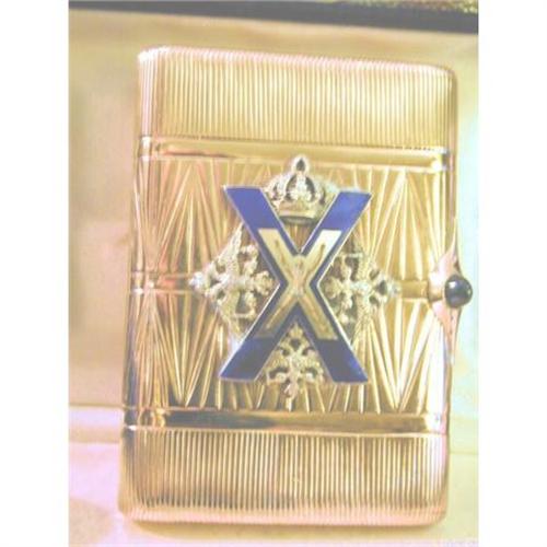 <tr><td>Title:Faberge Gold Preobrajinsky Cigarette Case</td></tr>