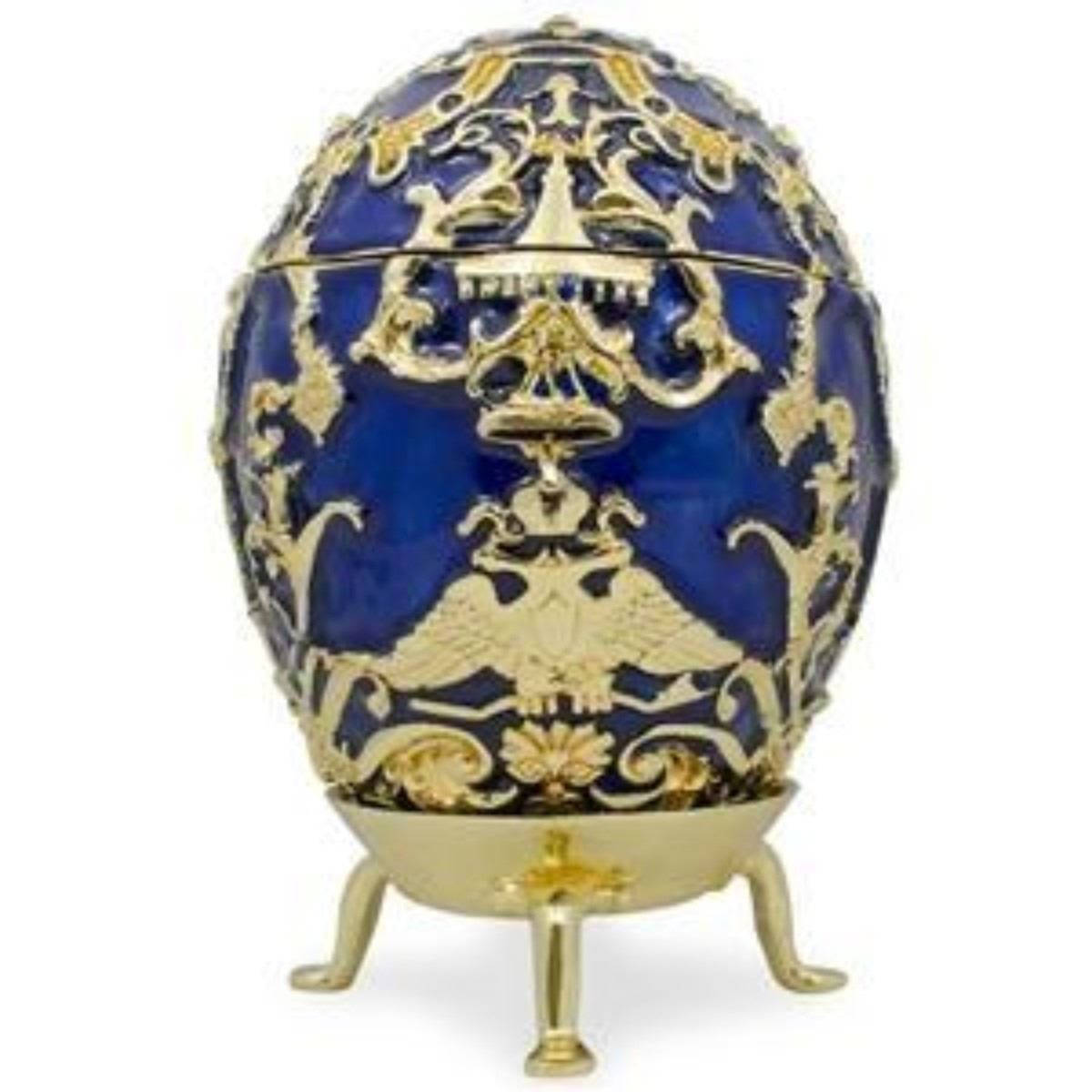 Magnificent Representation of®1912 Russian,®Tsarevich (Czarevich) Faberge Egg 4.5" (H) without Stand 3.25'' (D) Egg Pewter, Crystals, Ename®-l Gift Boxed. As new condition.® Faberge Eggs have a remarkable story and while the original Faberge eggs are virtually priceless, extraordinary re-creations of Carl Faberge’s works are not only fabulous to look at but wonderful to own and collect. You ask the question, “how much would an original Carl Faberge egg cost in today’s market”. Here’s a story that will give you that answer: Los Angeles Times: “A Faberge egg found at a flea market by a scrap-metal dealer who initially didn't realize the value of what he had discovered will be on public view for the first time in more than a century, according to a British art and antiques dealer. The egg, thought to have been made in the late 19th century for Russian royalty, was purchased years ago at a U.S. flea market for just $14,000, said the antiques dealer, Wartski. The buyer was interested in the item for its gold content but later suspected the piece might be even more valuable. The egg was later sold to a private collector. The identities of the buyer and seller haven't been revealed. Wartski didn't disclose how much was paid for the egg, but some estimates put its value as high as $33 million. It will be on display at Wartski in London from April 14 to 17.” The first Faberge egg was crafted for Tsar Alexander III, who had decided to give his wife, the Empress Maria Fedorovna, an Easter egg in 1885, possibly to celebrate the 20th anniversary of their betrothal. Although there is no official record of the Tsar's inspiration for it, many believe that he was moved by an egg owned by the Empress’s aunt, Princess Vilhelmine Marie of Denmark, which had captivated Maria’s imagination in her childhood and of which the Tsar was well aware. Known as the Hen Egg, the very first Faberge egg is crafted from a foundation of gold. Its opaque white enameled "shell" opens to reveal a matte yellow-gold yolk. This in turn opens to reveal a multicolored gold hen that also opens. The hen contained a minute diamond replica of the imperial crown from which a small ruby pendant was suspended, but these last two elements have been lost.[2] Maria was so delighted by the gift that Alexander appointed Faberge a "goldsmith by special appointment to the Imperial Crown" and commissioned another egg the next year. After that, Peter Carl Faberge was apparently given complete freedom for the design of future imperial Easter eggs, and their designs became more elaborate. According to Faberge family lore, not even the Tsar knew what form they would take—the only requirements were that each contain a surprise, and that each be unique. Once Faberge had approved an initial design, the work was carried out by a team of craftsmen, among them Michael Perkhin, Henrik Wigstrom and Erik August Kollin.[citation needed] After Alexander III's death on 1 November 1894, his son, Nicholas II, presented a Faberge egg to both his wife, Alexandra Fedorovna, and his mother, the Dowager Empress Maria Fedorovna. Records have shown that of the 50 imperial Easter eggs, 20 were given to the former and 30 to the latter. Eggs were made each year except 1904 and 1905, during the Russo-Japanese War.[3] The imperial eggs enjoyed great fame, and Faberge was commissioned to make similar eggs for a few private clients, including the Duchess of Marlborough, the Rothschild family and the Yusupovs. Faberge was also commissioned to make twelve eggs for the industrialist Alexander Kelch, though only seven appear to have been completed.[1] Following the revolution and the nationalization of the Faberge workshop in St. Petersburg by the bolsheviks in 1918, the Faberge family left Russia. The Faberge trademark has since been sold several times and several companies have retailed egg-related merchandise using the Faberge name. The Victor Mayer jewelry company produced limited edition heirloom quality Faberge eggs authorized under Unilever's license from 1998 to 2009. The trademark is now owned by Faberge Limited, which makes egg-themed jewellery.[4] In 2015 the owners of this trademark announced the creation of a new "Faberge" egg, one styled by them as belonging to the "Imperial Class" of eggs and therefore the first Imperial-Class egg in 100 years: the Faberge Pearl egg is to be sold in Qatar following a five-day exhibition some time in 2017. A spokesperson for the brand said it expected the egg to fetch at least two million US dollars, possibly much more. Despite its designation as "Imperial", it has no connection to Imperial Russia and instead has become closely tied to wealthy Arab ruling families of various Gulf Nations.[5] Its motif has been described as "scalloped", but the patterns of its curves and lines are also clearly derived from the girih and arabesque of Islamic interlace patterns, and each of its six vertical segments includes a stylized pointed dome and associated pendentives reminiscent of the onion dome and ceiling of an Arabic mosque. The celebrated series of 50 Imperial Easter eggs was created for the Russian Imperial family from 1885 to 1916 when the company was run by Peter Carl Faberge. These creations are inextricably linked to the glory and tragic fate of the last Romanov family. They were the ultimate achievement of the renowned Russian jewelry house and must also be considered the last great commissions of objets d’art . Ten eggs were produced from 1885 to 1893, during the reign of Emperor Alexander III; 40 more were created during the rule of his dutiful son, Nicholas II, two each year, one for his mother, the dowager, the second for his wife. The series began in 1885 when Emperor Alexander III, through the intermediary of his uncle, Grand Duke Vladimir, commissioned an Easter egg from Faberge as an Easter present for his wife, Empress Maria Feodorovna. Initially planned by Faberge to contain a diamond ring, the actu