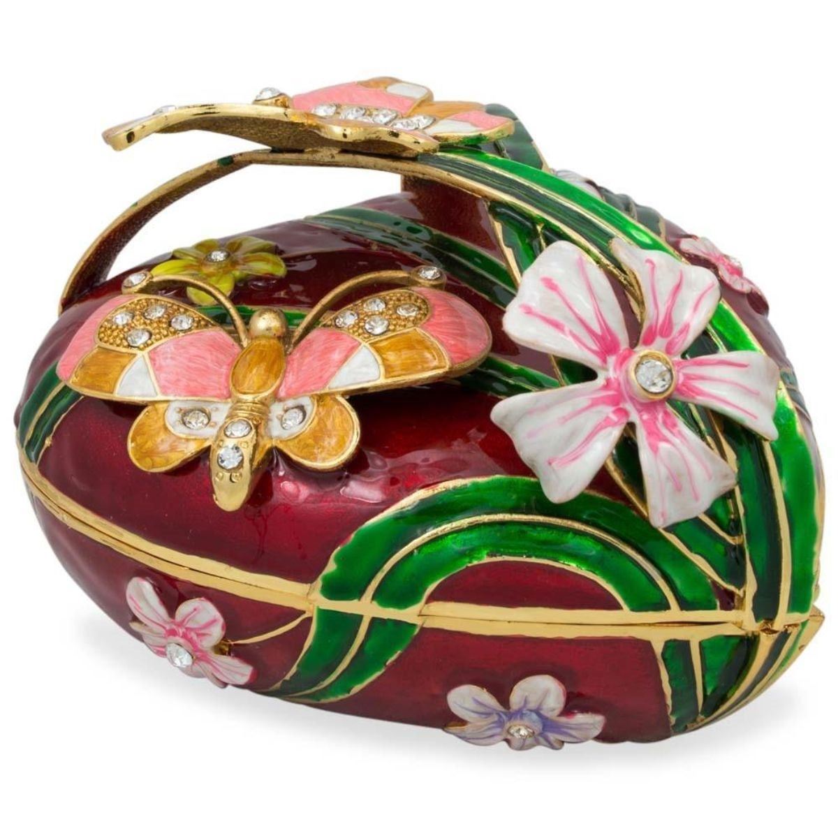 6.5" Valentine's Love Heart with Butterfly Jewelry Box This sparkling trinket box is adorned with clear crystals and high-polished enamel with golden trim. It opens on a hinge and has a magnetic closure to keep the box securely shut. The piece also comes in a beautiful gift box. 6.5" (W) X5" (H) Pewter, Crystals, Enamel Boxed Faberge Eggs have a remarkable story and while the original Faberge eggs are virtually priceless, extraordinary re-creations of Carl Faberge’s works are not only fabulous to look at but wonderful to own and collect. You ask the question, “how much would an original Carl Faberge egg cost in today’s marketâ€. Here’s a story that will give you that answer: Los Angeles Times: “A Faberge egg found at a flea market by a scrap-metal dealer who initially didn't realize the value of what he had discovered will be on public view for the first time in more than a century, according to a British art and antiques dealer. The egg, thought to have been made in the late 19th century for Russian royalty, was purchased years ago at a U.S. flea market for just $14,000, said the antiques dealer, Wartski. The buyer was interested in the item for its gold content but later suspected the piece might be even more valuable. The egg was later sold to a private collector. The identities of the buyer and seller haven't been revealed. Wartski didn't disclose how much was paid for the egg, but some estimates put its value as high as $33 million. It will be on display at Wartski in London from April 14 to 17.†The first Faberge egg was crafted for Tsar Alexander III, who had decided to give his wife, the Empress Maria Fedorovna, an Easter egg in 1885, possibly to celebrate the 20th anniversary of their betrothal. Although there is no official record of the Tsar's inspiration for it, many believe that he was moved by an egg owned by the Empress’s aunt, Princess Vilhelmine Marie of Denmark, which had captivated Maria’s imagination in her childhood and of which the Tsar was well aware. Known as the Hen Egg, the very first Faberge egg is crafted from a foundation of gold. Its opaque white enameled "shell" opens to reveal a matte yellow-gold yolk. This in turn opens to reveal a multicolored gold hen that also opens. The hen contained a minute diamond replica of the imperial crown from which a small ruby pendant was suspended, but these last two elements have been lost.[2] Maria was so delighted by the gift that Alexander appointed Faberge a "goldsmith by special appointment to the Imperial Crown" and commissioned another egg the next year. After that, Peter Carl Faberge was apparently given complete freedom for the design of future imperial Easter eggs, and their designs became more elaborate. According to Faberge family lore, not even the Tsar knew what form they would take—the only requirements were that each contain a surprise, and that each be unique. Once Faberge had approved an initial design, the work was carried out by a team of craftsmen, among them Michael Perkhin, Henrik Wigstrom and Erik August Kollin.[citation needed] After Alexander III's death on 1 November 1894, his son, Nicholas II, presented a Faberge egg to both his wife, Alexandra Fedorovna, and his mother, the Dowager Empress Maria Fedorovna. Records have shown that of the 50 imperial Easter eggs, 20 were given to the former and 30 to the latter. Eggs were made each year except 1904 and 1905, during the Russo-Japanese War.[3] The imperial eggs enjoyed great fame, and Faberge was commissioned to make similar eggs for a few private clients, including the Duchess of Marlborough, the Rothschild family and the Yusupovs. Faberge was also commissioned to make twelve eggs for the industrialist Alexander Kelch, though only seven appear to have been completed.[1] Following the revolution and the nationalization of the Faberge workshop in St. Petersburg by the bolsheviks in 1918, the Faberge family left Russia. The Faberge trademark has since been sold several times and several companies have retailed egg-related merchandise using the Faberge name. The Victor Mayer jewelry company produced limited edition heirloom quality Faberge eggs authorized under Unilever's license from 1998 to 2009. The trademark is now owned by Faberge Limited, which makes egg-themed jewellery.[4] In 2015 the owners of this trademark announced the creation of a new "Faberge" egg, one styled by them as belonging to the "Imperial Class" of eggs and therefore the first Imperial-Class egg in 100 years: the Faberge Pearl egg is to be sold in Qatar following a five-day exhibition some time in 2017. A spokesperson for the brand said it expected the egg to fetch at least two million US dollars, possibly much more. Despite its designation as "Imperial", it has no connection to Imperial Russia and instead has become closely tied to wealthy Arab ruling families of various Gulf Nations.[5] Its motif has been described as "scalloped", but the patterns of its curves and lines are also clearly derived from the girih and arabesque of Islamic interlace patterns, and each of its six vertical segments includes a stylized pointed dome and associated pendentives reminiscent of the onion dome and ceiling of an Arabic mosque. The celebrated series of 50 Imperial Easter eggs was created for the Russian Imperial family from 1885 to 1916 when the company was run by Peter Carl Faberge. These creations are inextricably linked to the glory and tragic fate of the last Romanov family. They were the ultimate achievement of the renowned Russian jewelry house and must also be considered the last great commissions of objets d’art . Ten eggs were produced from 1885 to 1893, during the reign of Emperor Alexander III; 40 more were created during the rule of his dutiful son, Nicholas II, two each year, one for his mother, the dowager, the second for his wife. The series began in 1885 when Emperor Alexander III, through the intermediary of his uncle, Grand Duke Vladimir, commissioned a