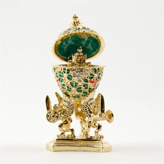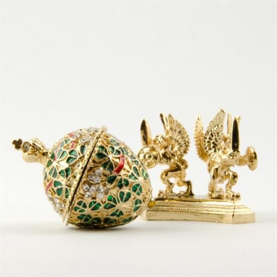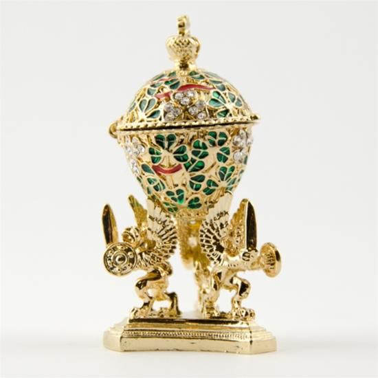 Faberge Miniature Egg, Pewter, Austrian Crystals. Egg with stand dimensions: 2.25in (H) x 1in (D) The famed Faberge eggs are jeweled eggs, often with the most ornate, minuscule designs on them. The House of Faberge made the original pieces from 1885 to 1917. At that time, they became popular gifts given during the Easter season. Larger versions were made for the Russian royal family, including Alexander III and Nicolas II. Of these, 42 of the 50 originals exist today. Most Faberge eggs, though, were much smaller and hung from a chain around the neck. These eggs have precious metals on them or gemstone decorations, often with intricate detailing. These are a symbol of luxury and thought of as individual masterpieces.