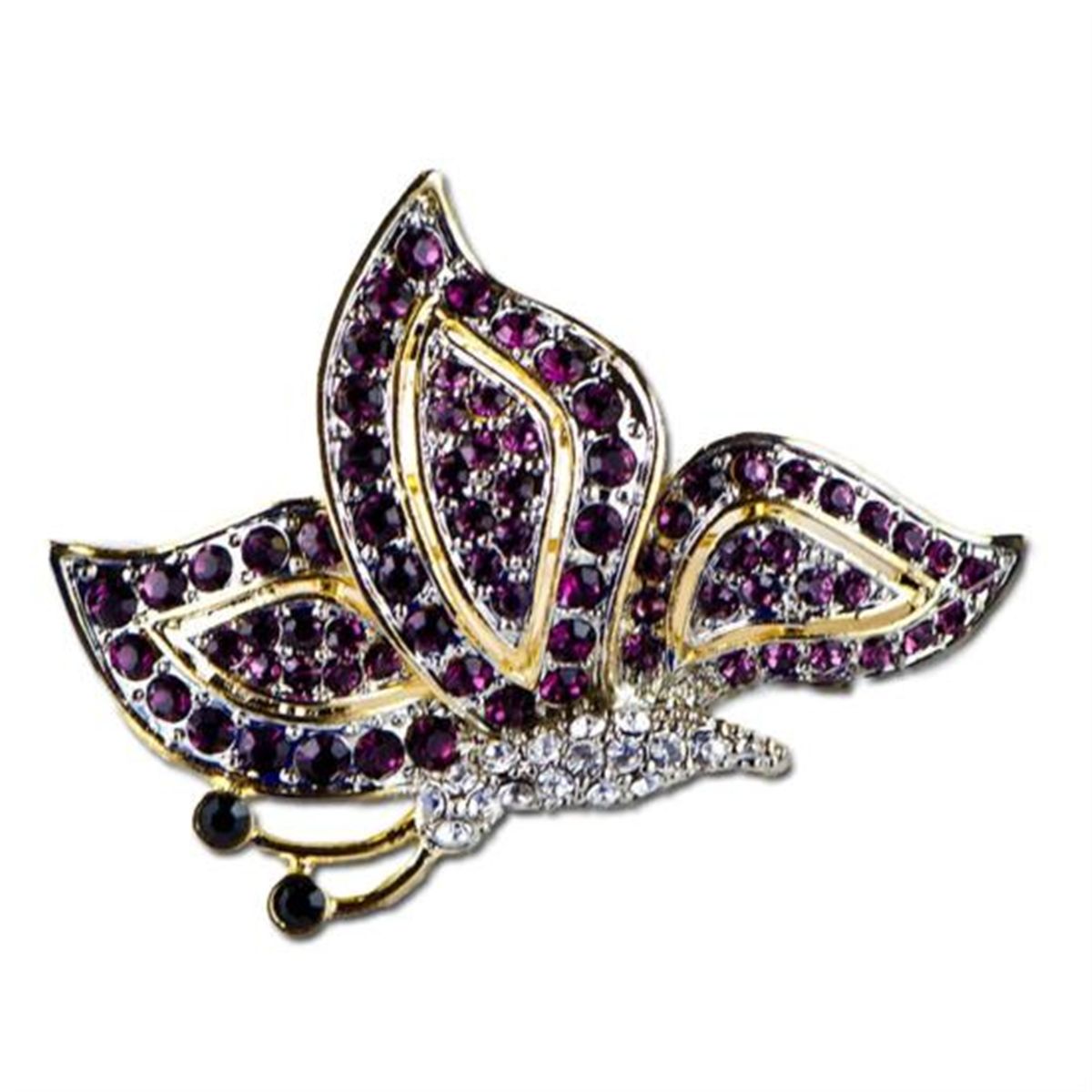 Faberge Ruby Butterfly Brooch, Dimensions: 2in (W), Material: Pewter, Crystals. The brooch is an absolute sparkling beauty with colored crystals all over.