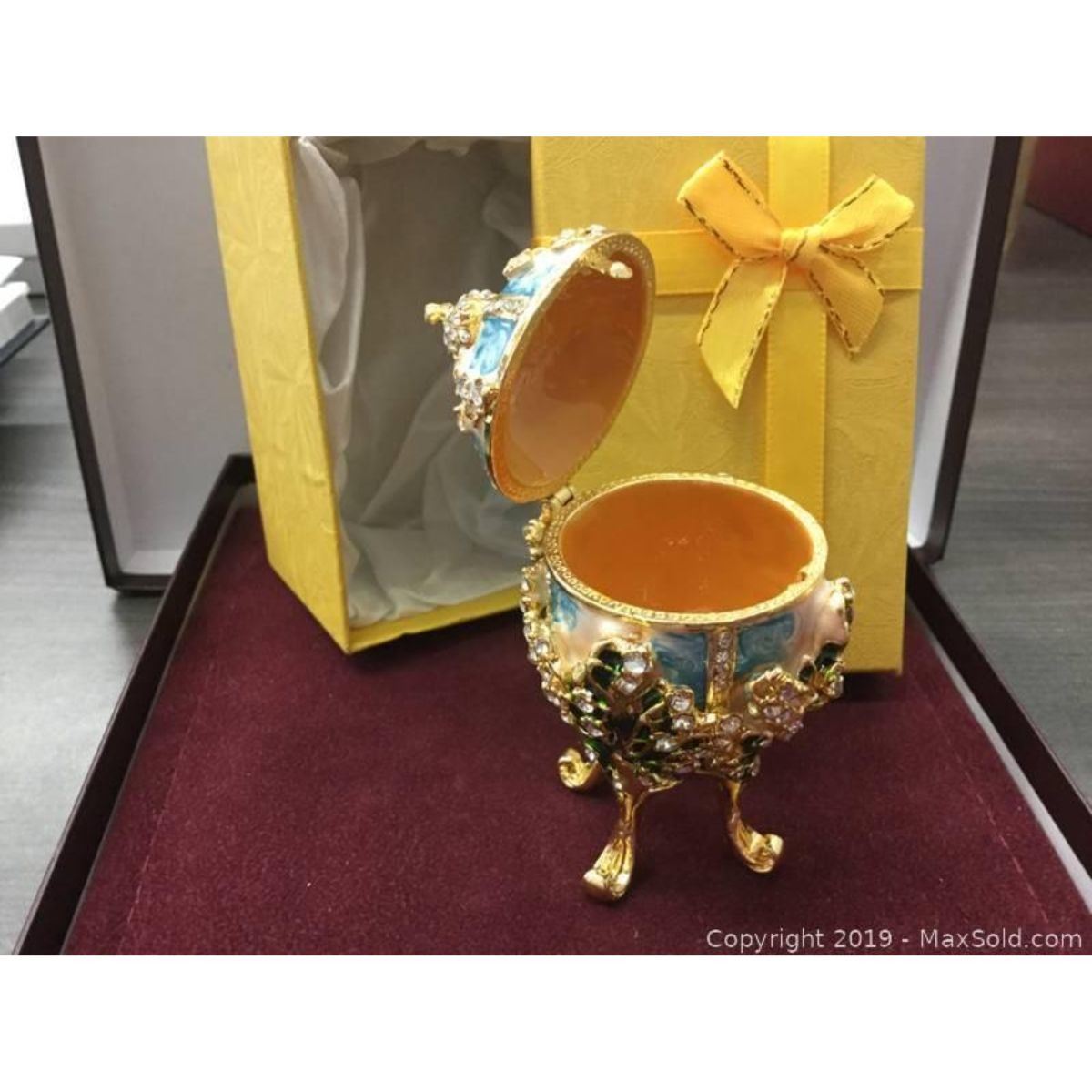 A Decorated Open Top Egg With Gift Box. The Egg Is Decorated With Semi Precious Stones and Will Make a Great Center Piece Or Conversation Piece In Your Dining Area. View Photos For Further Details Â
