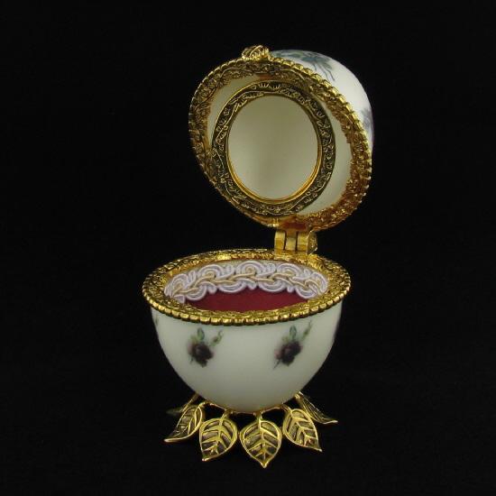 Ornately hand-decorated, 18k gold over pewter hardware, silk lined, 4"; $225 retail
