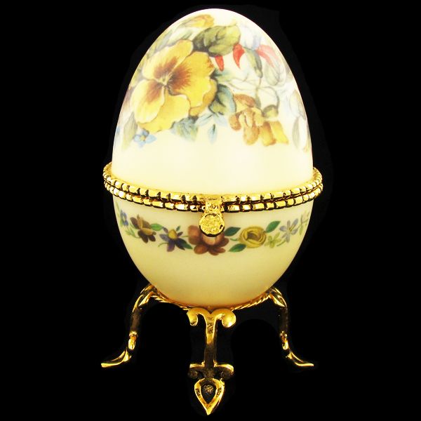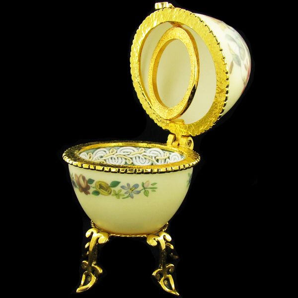 Ornately hand-decorated, 18k gold over pewter hardware, silk lined, 4";
