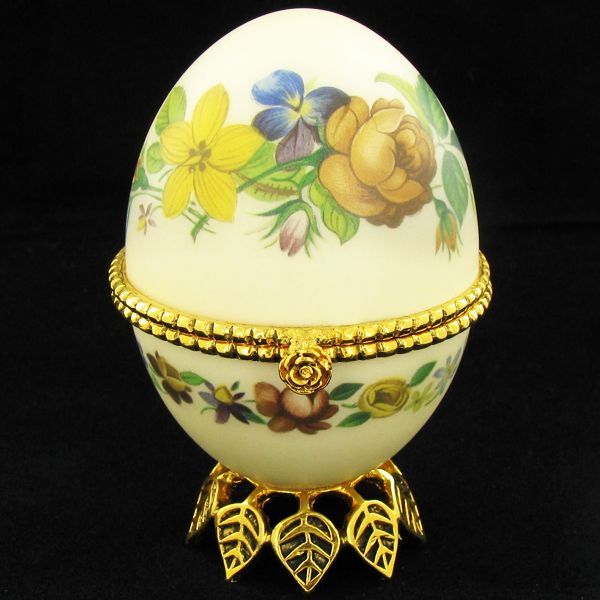 Ornately hand-decorated, 18k gold over pewter hardware, silk lined, 4";