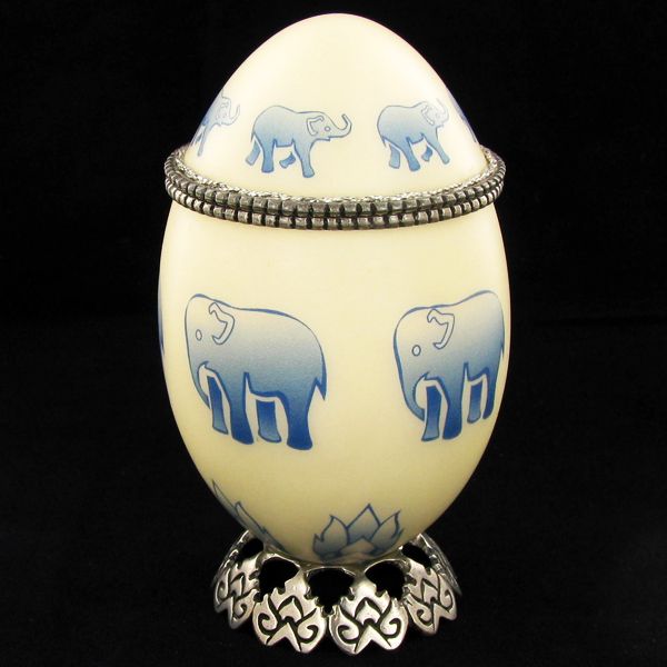 Ornately hand-decorated, pewter hardware, silk lined, 4";