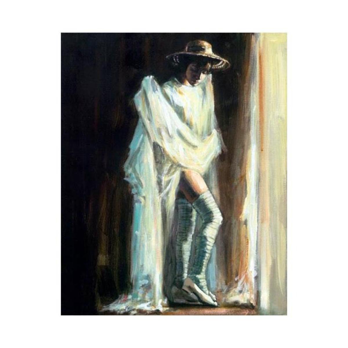 "Catalina By The Window" is a hand textured limited edition giclee on stretched canvas by Fabian Perez. The piece is numbered and hand signed. Includes a certificate of authenticity. Measures approximately 25" x 20". Reference #: 236320