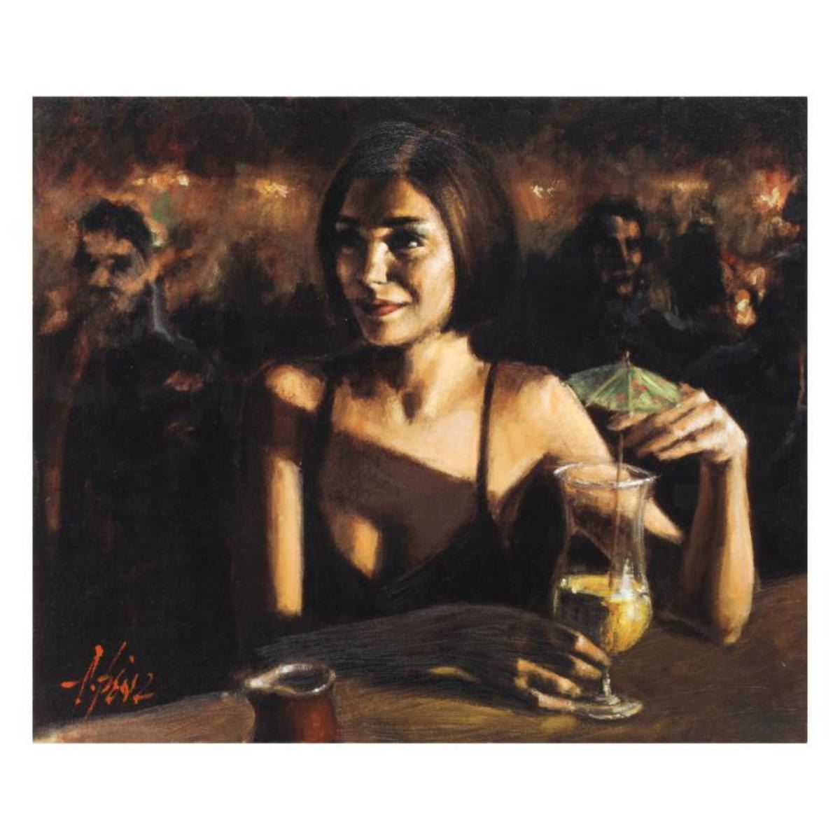 "Cocktail In Maui" is a hand textured limited edition giclee on stretched canvas by Fabian Perez. The piece is numbered and hand signed. Includes a certificate of authenticity. Measures approximately 20" x 25". Reference #: 236323