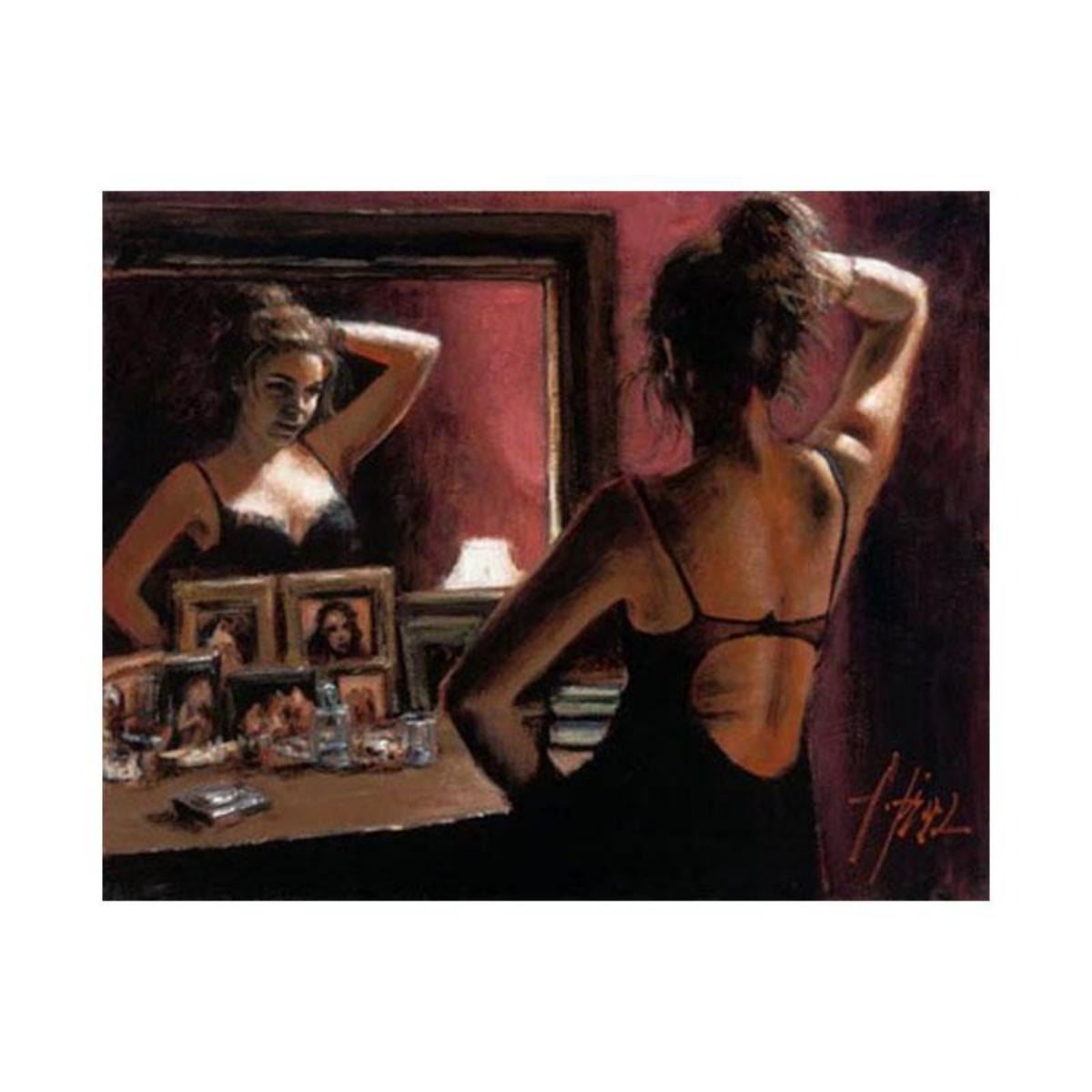 "El Espejo" is a hand textured limited edition giclee on canvas board by Fabian Perez. The piece is numbered and hand signed. Includes a certificate of authenticity. Measures approximately 13" x 16.5" Reference #: 236424