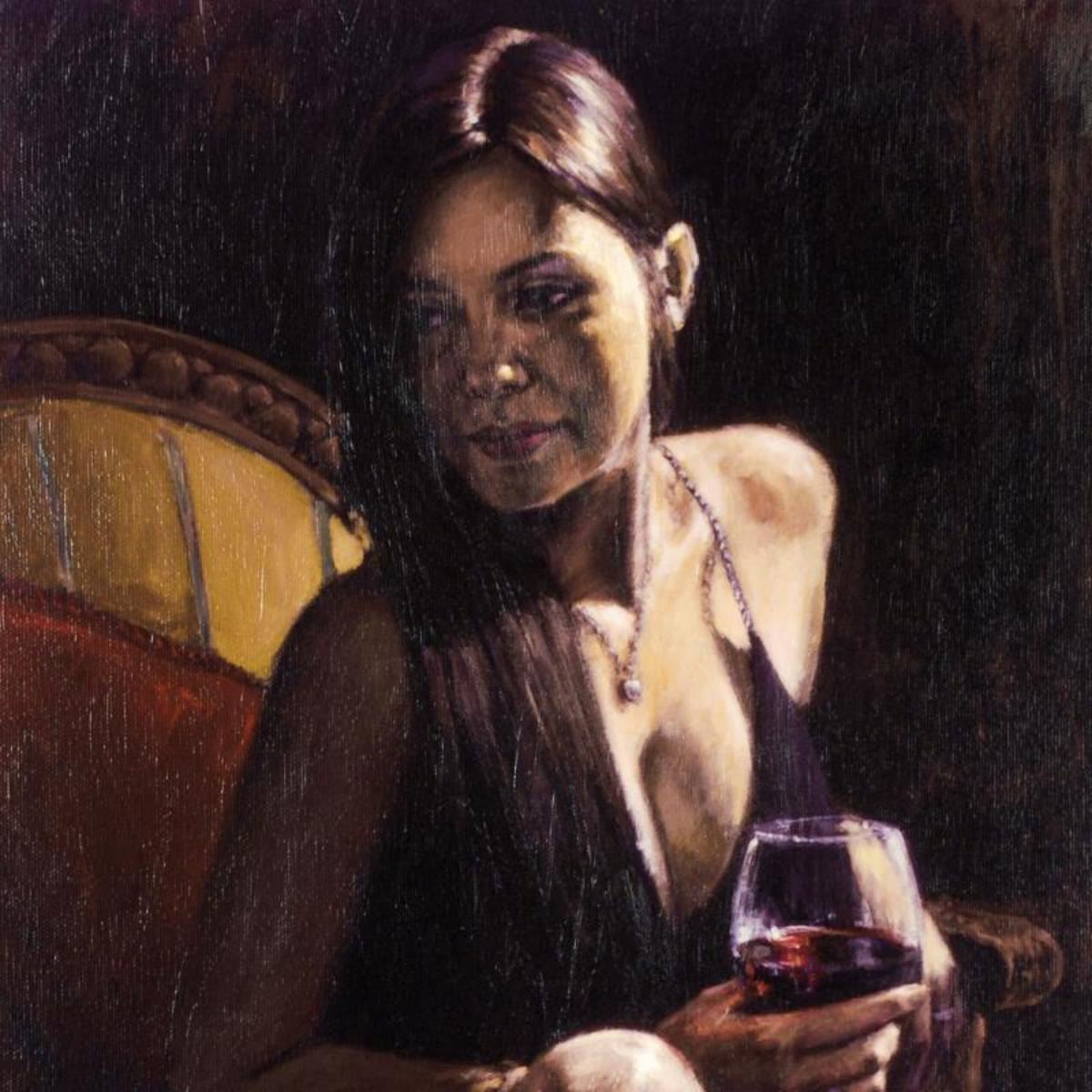 Fabian Perez, "Monica" Hand Textured Limited Edition Giclee on Board. Hand Signed and Numbered.