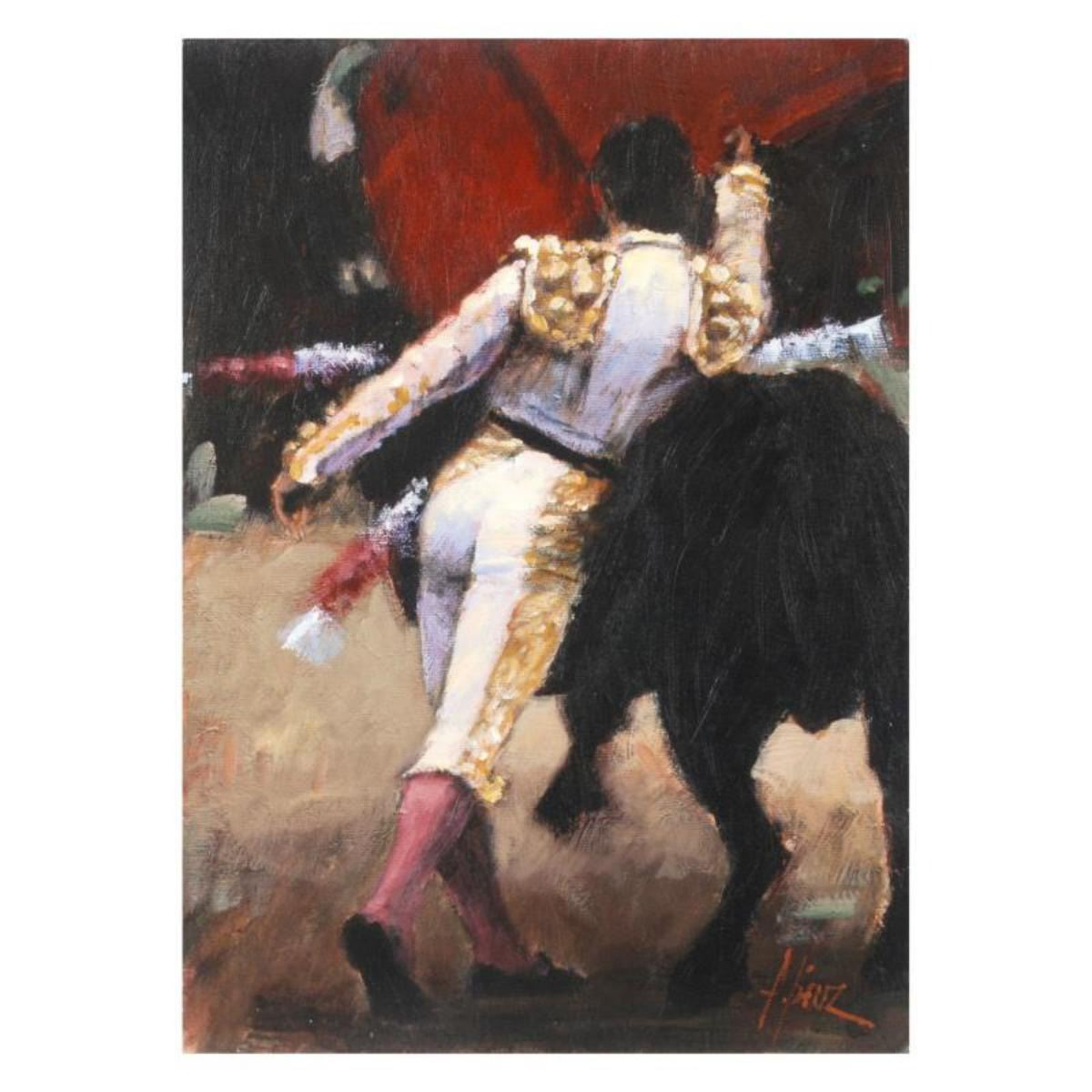 "Pasa De Pecho" is a hand textured limited edition giclee on canvas board by Fabian Perez. The piece is numbered and hand signed. Includes a certificate of authenticity. Measures approximately 16.5" x 12" Reference #: 236467