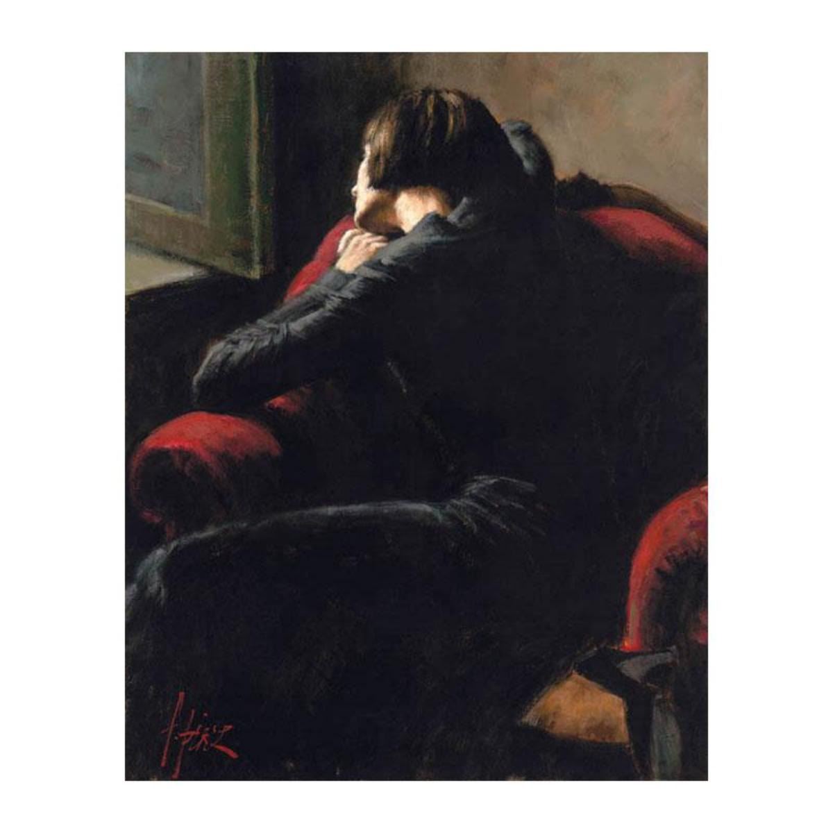 "Rojo Sillon" is a hand textured limited edition giclee on canvas board by Fabian Perez. The piece is numbered and hand signed. Includes a certificate of authenticity. Measures approximately 25.5" x 13" Reference #: 236476