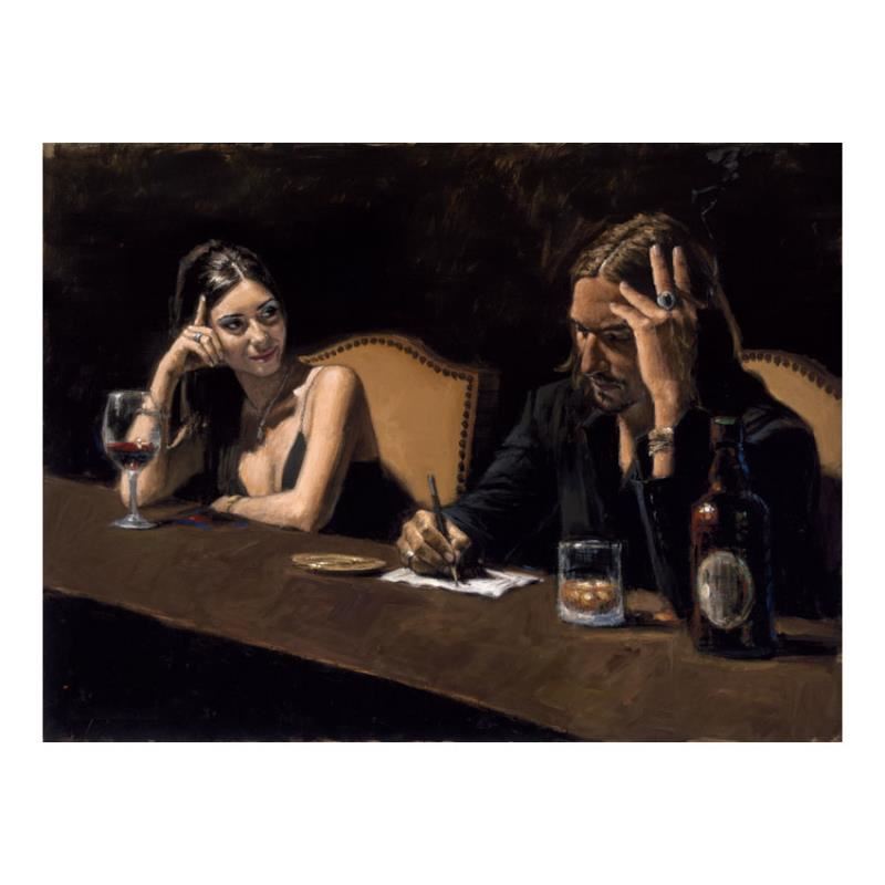 "Fabian and Monica" is a hand embellished limited edition giclee on stretched canvas by Fabian Perez. The piece is numbered and hand signed by the artist and comes with a Certificate of Authenticity. Measures approx. 30" x 40" (image). Please allow 5 additional business for items that include canvas stretch or framing.