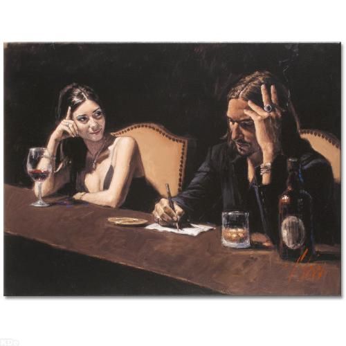 With rich colors and an impeccable sense of composition, Fabian Perez creates works with emotional depth. "Fabian and Monica" is a limited edition embellished giclee on stretched canvas, numbered and hand signed by Perez. Includes Certificate of Authenticity! Measures approx. 26.5" x 20" (image).