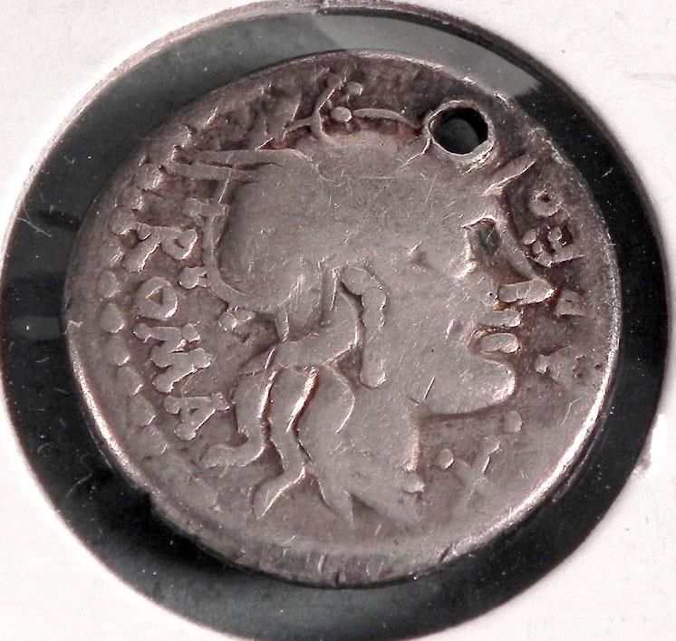 Fabius Labio Roman Ancient Coin * Circa: 124 BCContent: SilverSize: 18 mm in diameterDetailed: Holed
