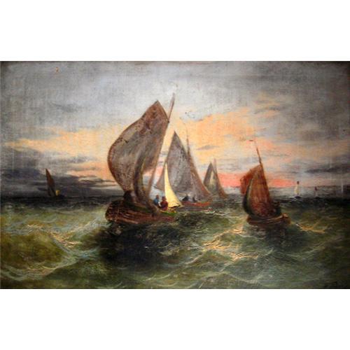 This rare magnificent paitning was painted by Fabres & Costa A. and shows the sight of boats in a turbulent sea.