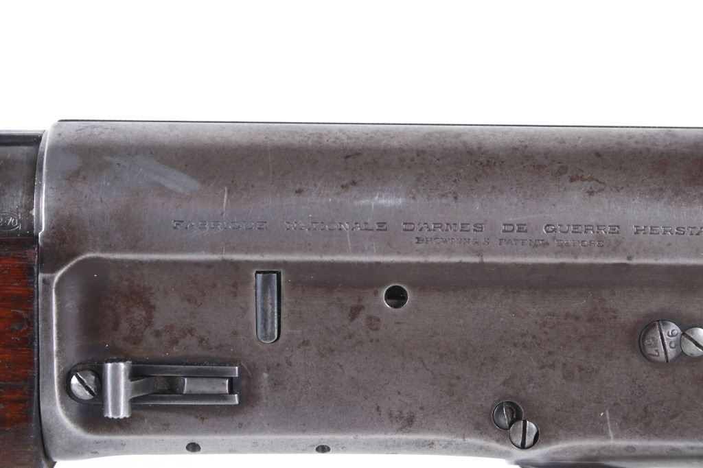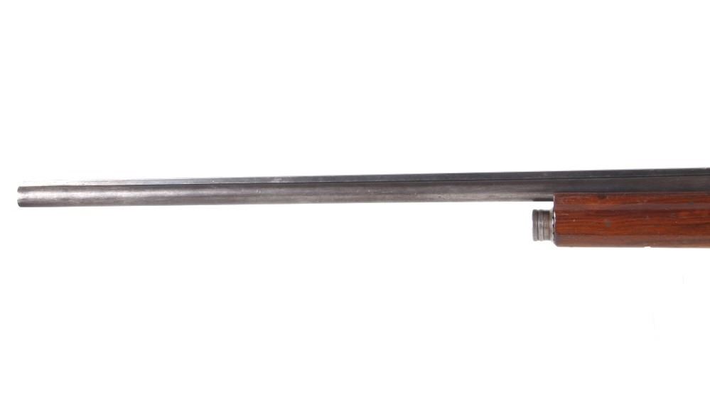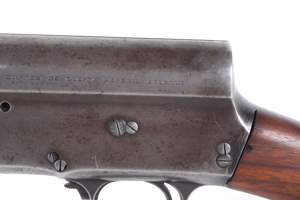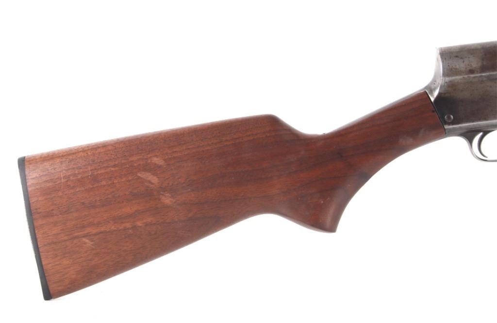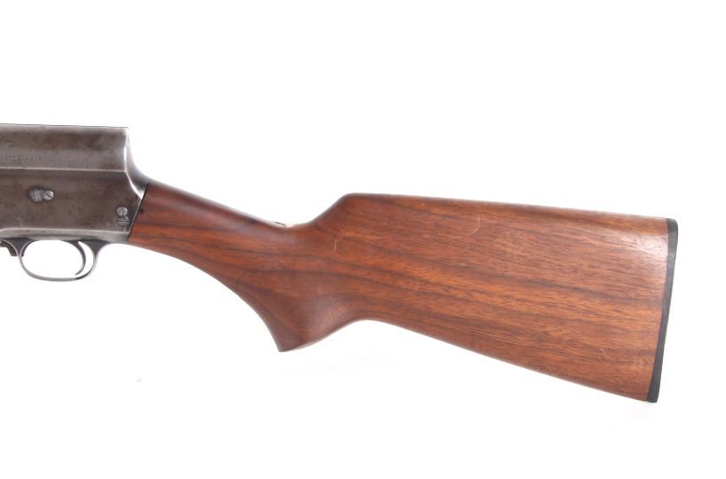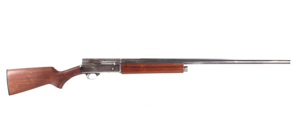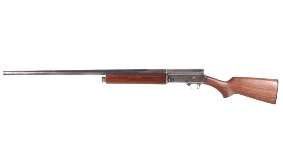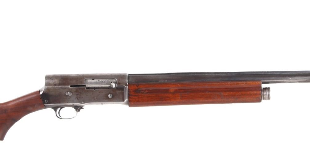 Featured in this lot we have a Fabrique Nationale D'Armes Browning Auto 5 semi automatic shotgun chambered in 12 Gauge. The shotgun was manufactured between 1902 to 1998 by Fabrique Nationale in Belgium using Brownings design. The Auto 5 was the first mass produced semi auto shotgun and was used in five large wars including both World Wars, and the Vietnam War. The shotgun displays 31" long round barrel, walnut stock and front grip, under barrel tube magazine, and Semi-Automatic action. The shotgun was manufactured in Belgium and features numerous proof and inspection marks across the piece. The left side of the barrel is marked "Browning Arms Company Ogen Utah Browning's Patent Full 12 Special Steel" with the right side of the barrel marked "Made In Belgium". The frame is marked on the left side reading "Fabrique Nationale D'Armes De Guerre Herstal Belgique Brownings Patent Depose". Mechanically the shotgun displays a working action a crisp trigger system. The shotgun shows good condition overall with some wear due to age and handling and one of the stock screws loose. Serial Number: 129367. This firearm qualifies as a Curio & Relic firearm, and requires FFL Transfer or NICS Background Check.