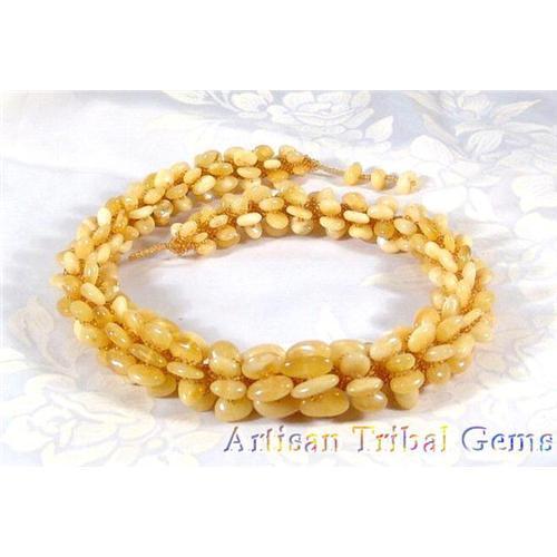 <tr><td>Title:Fabulous ARTISAN Woven BUTTER amber Necklace</td></tr>