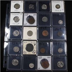 Page of 20 Mixed coins Jefferson 5c, Braided Hair 1c, Washington 25c, Mercury 10c, Indian 1c, Buffalo 5c. A nice page of a wide variety of 20 c