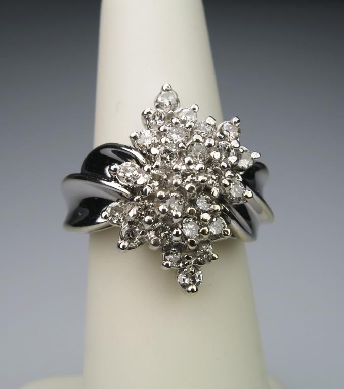 Fabulous Diamond Cocktail Ring with 30 round brilliant cut Diamonds weighing approx. 1.20 carats with F-G colors set in 8.00 grams of 14 karat white gold. Retail $2,400-$2,800 Estimate $1,400-$1,800