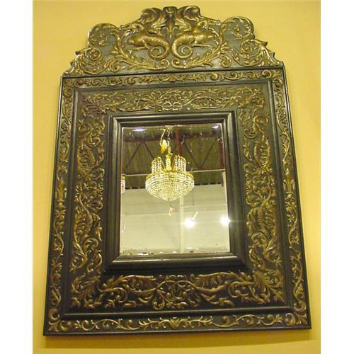 Fabulous Early 19th C. French mirror from a Chateau in Langeais. Ebonized wood & hand chased & applied Brass decorations. The Salamanders & Griffins honor Francois I & his Mistress