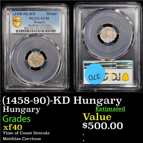 PCGS (1458-90)-KD Hungary Denar Graded xf40 By PCGS. Mathias Corvinus sometimes had Vlad III Tepes (Count Dracula) prince of Wallachia as his v