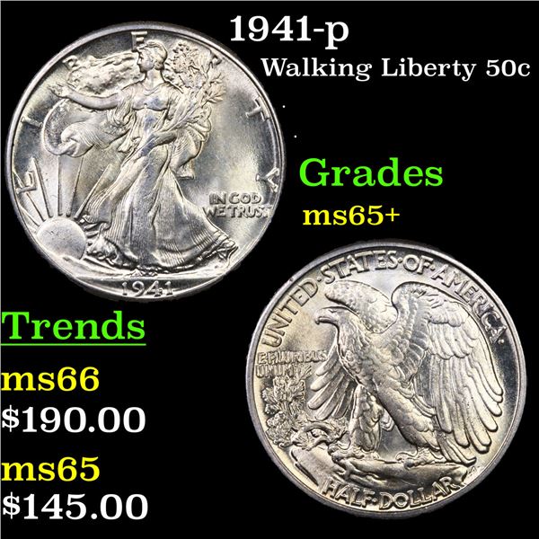 1941-p Walking Liberty Half Dollar 50c Grades GEM+ Unc.