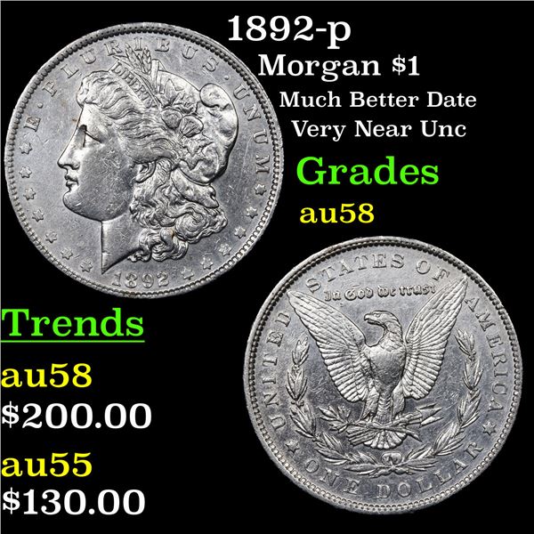 1892-p Morgan Dollar $1 Grades Choice AU/BU Slider