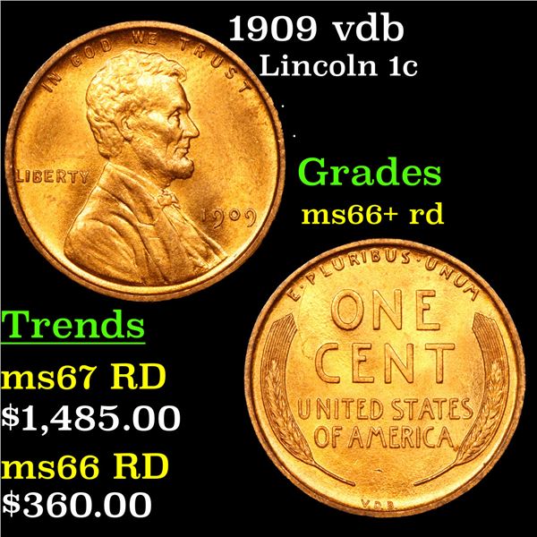 1909 vdb Lincoln Cent 1c Grades GEM++ RD. Always sought after date. Always popular.