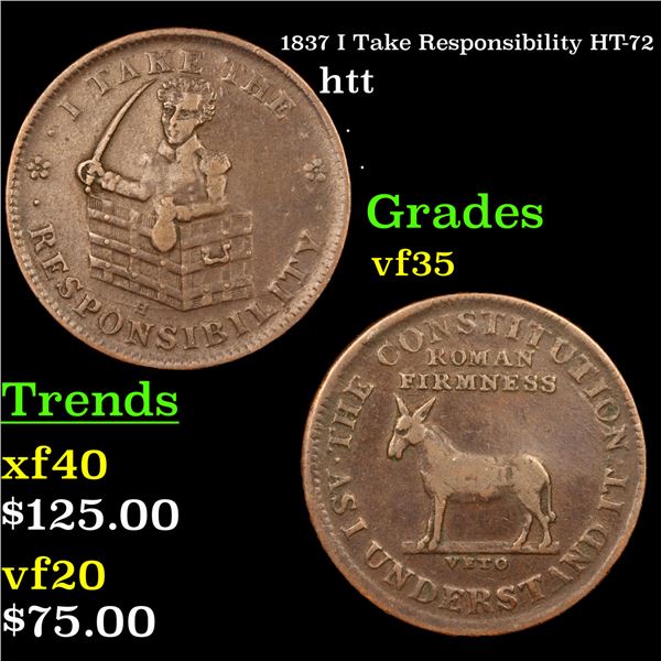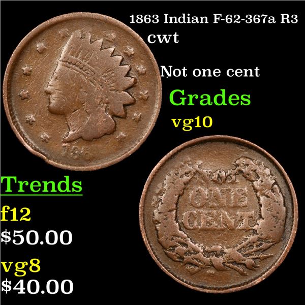 1863 Indian F-62-367a R3 Civil War Token 1c Grades vg+. Obverse-Indian Reverse-Not one cent