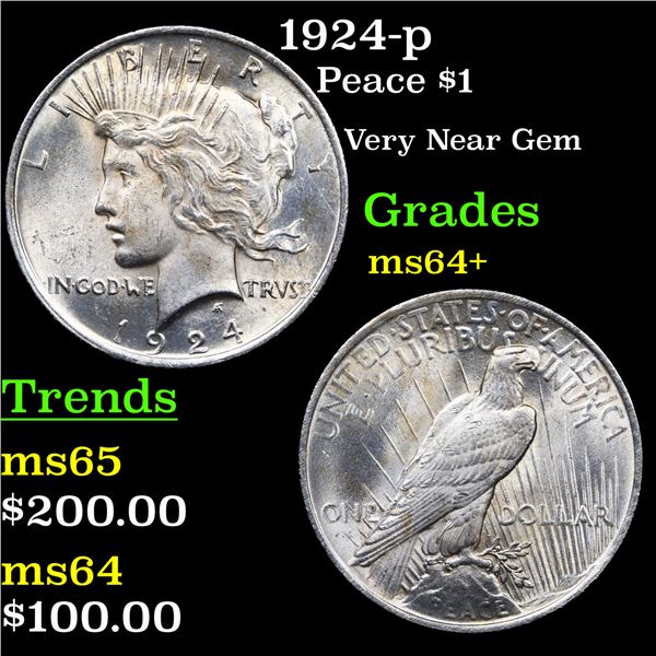 1924-p Peace Dollar $1 Grades Choice+ Unc