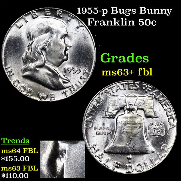 1955-p Bugs Bunny Franklin Half Dollar 50c Grades Select Unc+ FBL